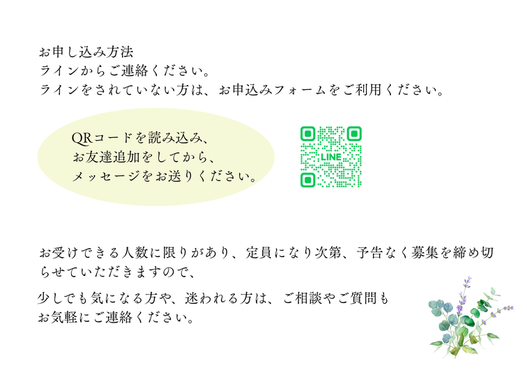 ラインをお使いでない方は、こちらのお問い合わせ・お申込みフォームをご利用ください。