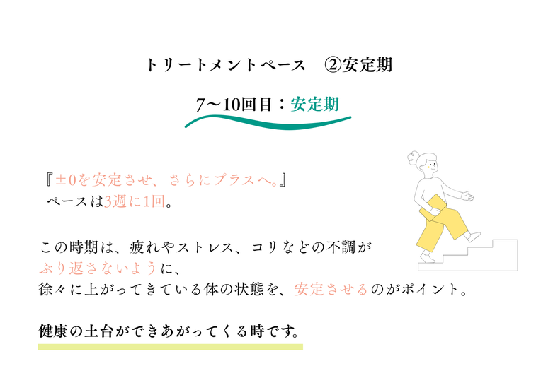 アロマトリートメントをこのペースで受けると、階段を登るように体の状態が整っていきます。