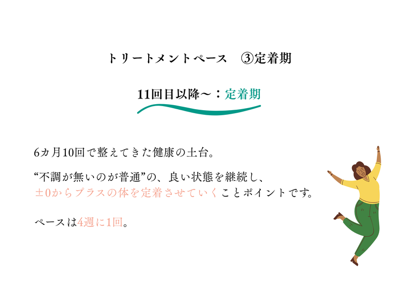 そして、上手に受けてあげることで、6カ月で今の体の困りごとが緩和され、健康の土台が整っていく、