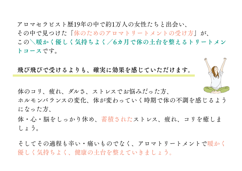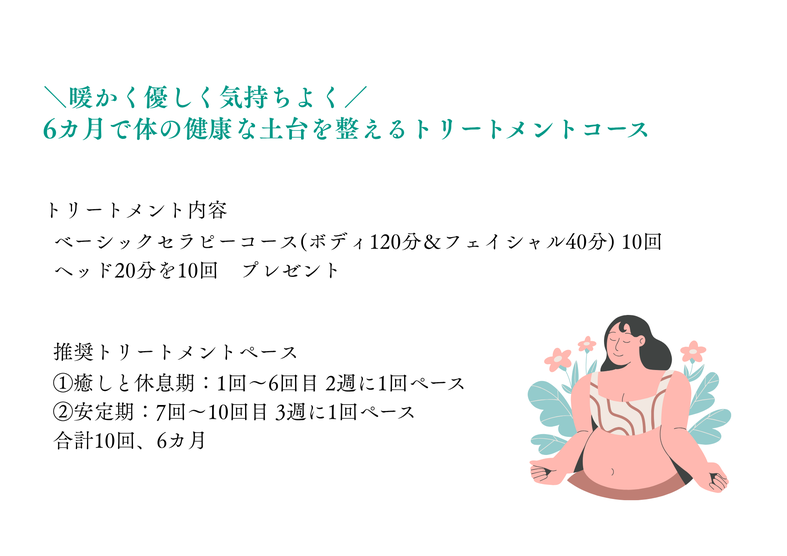 \暖かく優しく気持ちよく/6カ月で体の健康な土台を整えるトリートメントコース